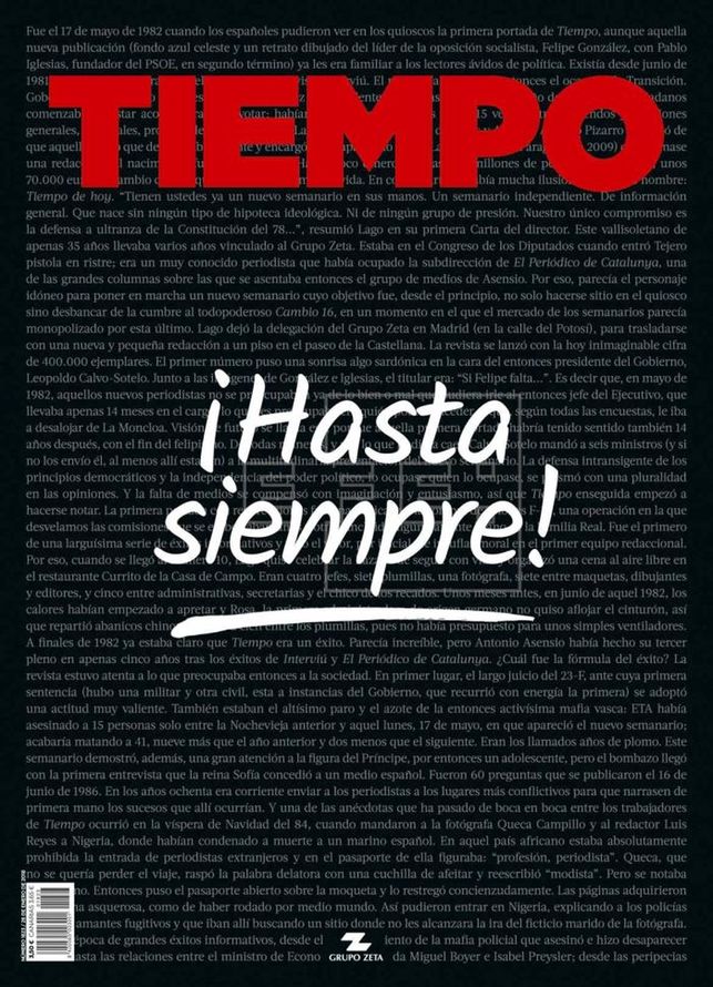 Hoy un año después, he encontrado esta entrevista que me hicieron en TIEMPO hace "tiempo". No me había hecho eco ni leído nada de ella pues coincidió justo con el cierre de la publicación tras 36 años en los kioscos, no sé quizá si fue de las últimas en "mojar los tinteros".
